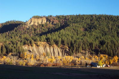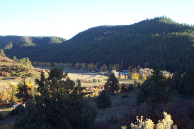 They string along the Blanco River valley from Hwy 84, west about 5 miles until County Road 335 ends at the entrance into a large ranch. The area is surrounded by National Forest or large tracts of private land. The valley is a relatively narrow canyon, walled in for much of its length by Eight Mile Mesa on the north and another high mesa on the south side. There is no central water system and none of the developments have covenants or restrictions.