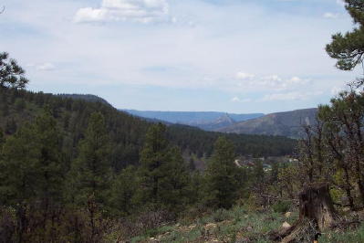 Directions: West on Hwy 160. The distinctive entry gate into Elk Park Meadows is visible on the right (north side of the highway).